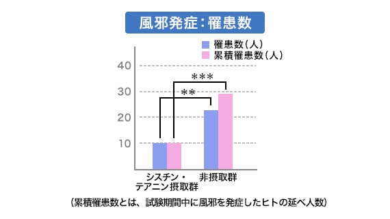 味の素グループの実験では、シスチンとテアニンを同時に摂取すると、摂取していない場合よりも風邪をひきにくくなるという結果が出ています。風邪を引いた場合でも、悪寒や発熱、鼻水、のどの痛みなどの症状が少なくなったということです。