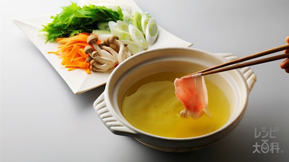 緑茶に多く含まれるテアニン、にんじんに豊富に含まれるβカロテン(ビタミンA)、緑黄色野菜に多く含まれるビタミンCをしっかり摂取することができます。ビタミンCは加熱に弱いので、薄く切ってだし汁をさっとくぐらせて食べるのがオススメ。また、豚肉に多く含まれるビタミンB1は疲労回復に良いといわれています。