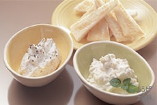 また、たんぱく質の含まれている食材だけですと栄養のバランスが偏ってしまいます。野菜・イモ・果物などビタミン・ミネラル・食物繊維を多く含むものや、ごはん・パン・めん類などの糖質源など、いろいろな食材を組み合わせましょう。