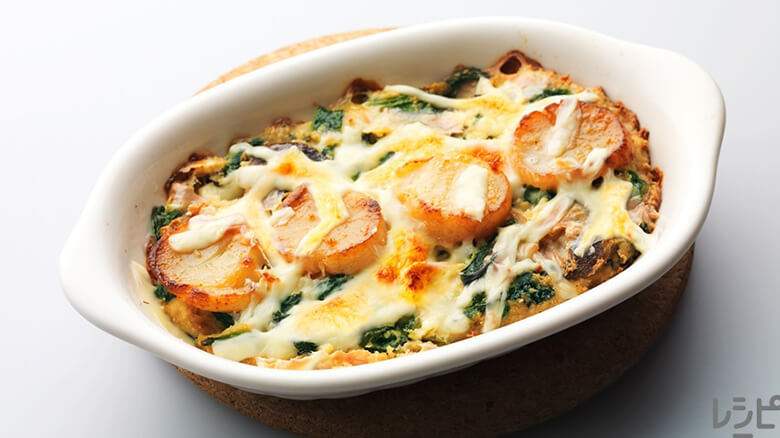 糖質の少ないほたてやおからを使ったグラタンです。糖質制限中やダイエット中ですとボリュームのある主食は躊躇しがちですが、おからを使用しているので糖質を抑えることができます。