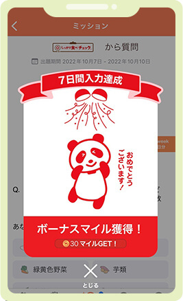 さらに、「アジパンダ®」が登場して「マイル」をプレゼントしてくれる演出も!貯まったマイルは Amazonギフト券と交換できるので、俄然、やる気が出てきます。