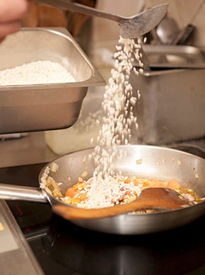 「リゾット」には、お米をバターとオリーブオイルで炒めてからスープで煮るという大きな違いがありました。
