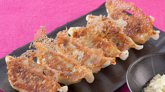 皮がパリッとしていて、噛むとジューシーな肉だねが飛び出してくるのが、おいしいギョーザの条件。特に、パリッパリの羽根がついていたら言うことないですよね。