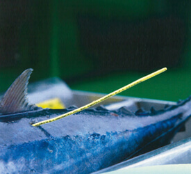 約10,000尾のカツオに対して通常標識放流調査を行い、2011年からは世界最先端の記録型電子標識(アーカイバルタグ)を用いた調査も開始。