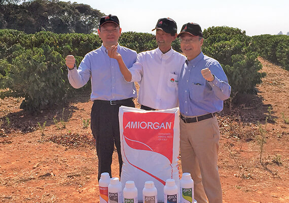 味の素AGF(株)はブラジル東部セラード地区の農園で2016年9月より、ブラジル味の素社の肥料「AJIFOL®」の使用を開始。農園が長年使用している肥料と同様の効果を発揮し、コーヒー豆の生産性や品質向上に役立てられている。