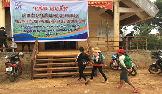 ベトナムでは2017年5~9月にクロンナン、エアレオ地区の農家にコーヒーの苗木とベトナム味の素社の肥料を配布。それぞれの地区の公民館にて、地域の農業従事者3,000人以上を集め、技術指導も実施した。