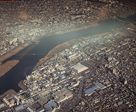 日本国内には、味の素グループの工場が3つあります。そのうち、もっとも古い工場が、神奈川県川崎市の鈴木町に位置する川崎工場です。そこは、京急川崎駅から小島新田駅を結ぶ京急大師線の、鈴木町駅を中心に前後4駅分に渡る広大なエリア。東京ドーム8個分に相当する約10万坪の敷地にあり、「味の素®」や「ほんだし®」「Cook Do®」といった主力製品の製造工場から物流センターまでを備えた、いわば味の素グループの心臓部です。製品の製造・出荷工程はもちろん、さまざまな体験ができる見学コースが、幅広い年齢層に人気です。