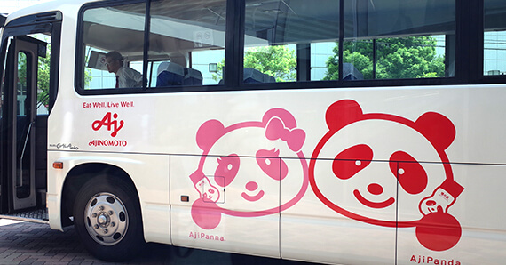 「アジパンダ®」と「アジパンナ®」が描かれた可愛いバスにテンションが高まってくる。