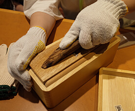 燻(いぶし)分けた3種類のかつお節を運び込むところから始まる製造工程は、粉砕から最終的な製品化まで、その豊かな香りを逃さないよう工夫された環境で進められます。見学半ばでは、本格的なかつお節削りを体験したり、未だ解明されないかつおの生態について知ることのできる興味深い "仕掛け"があったりと、展示も体験も随所に工夫が凝らされています。