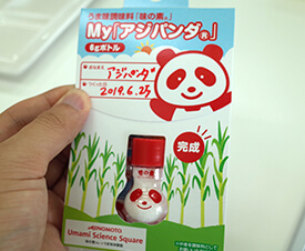 実際の製品づくりの一端を体験できる「親子おしごと体験」では、「味の素®」を小さなアジパンダ®瓶に詰めて、工場見学の記念に持ち帰ることができます。