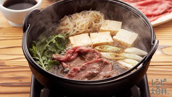 すき焼きは、古くから屋外で農具の鋤(すき)を使って鳥獣の肉を焼いて食べたことがその名前の由来といわれています。(※諸説あります)この語源のとおり、関西を中心に「すき焼きはまず鉄鍋で肉を焼いてから」という方も多いですよね。