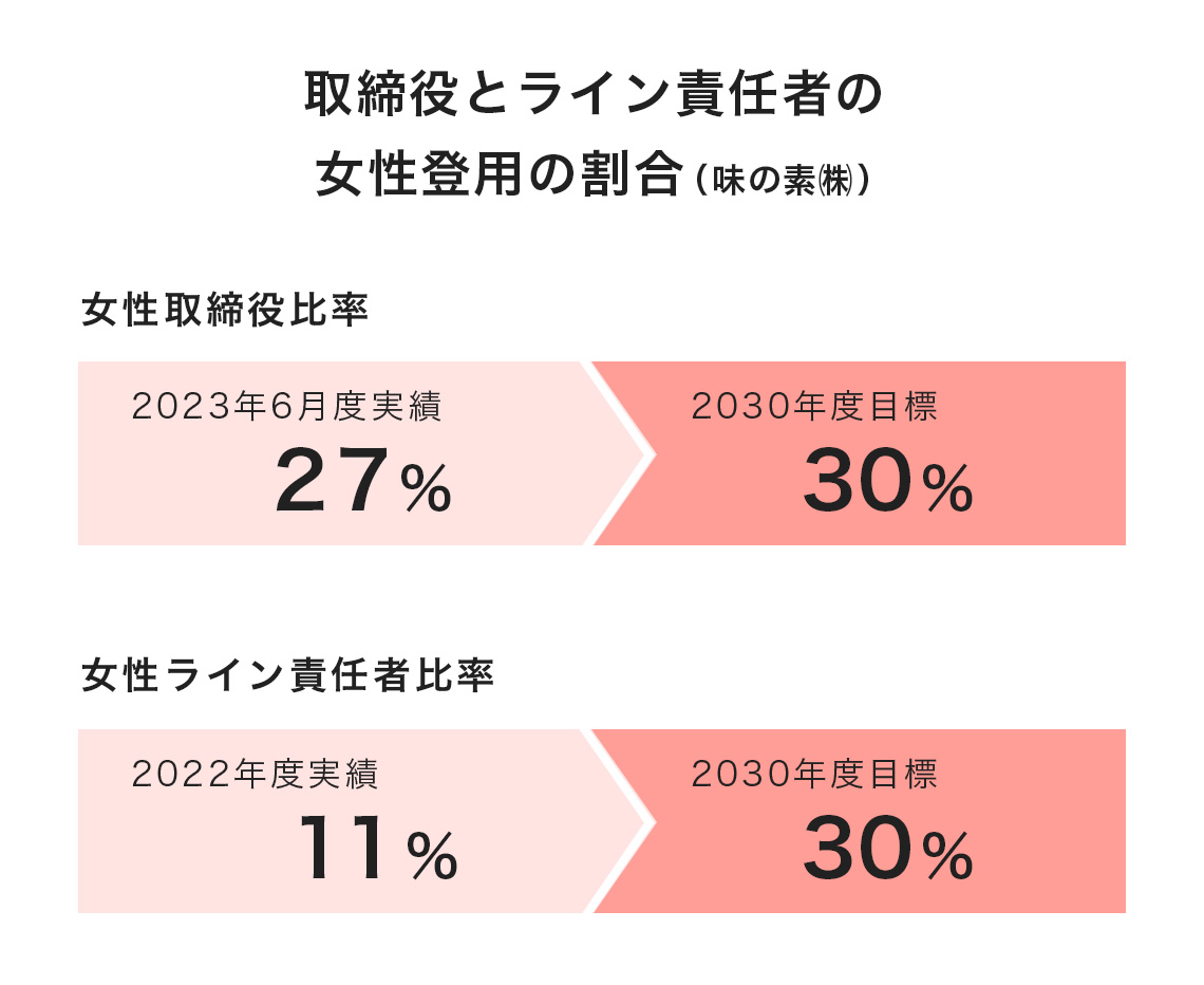 味の素社は「様々な場面において、女性が責任ある立場で意思決定に参画することも女性活躍」と定義し、その実現に向けた取り組みを加速させています。
