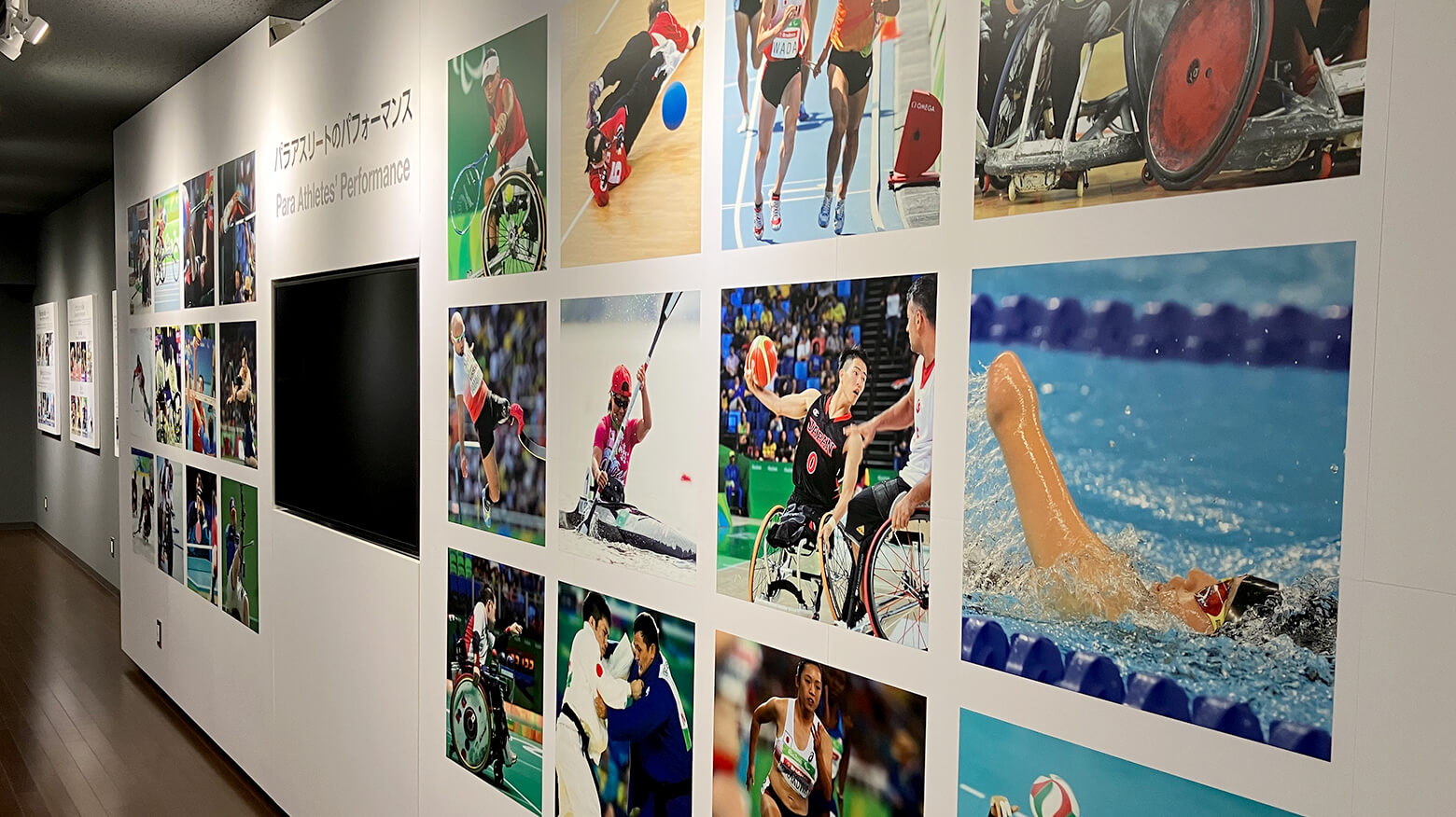 パラアスリートの様々な競技写真が飾られたギャラリー
