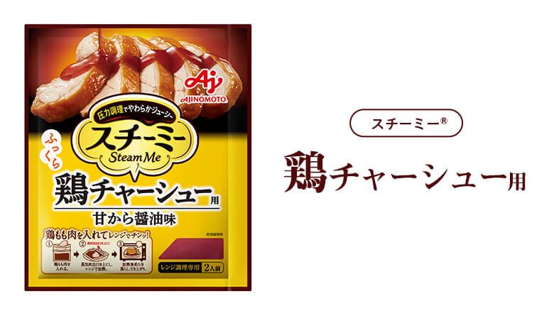 そんな方におすすめしたいのが、味の素社の圧力スチームパウチ入り調味料「スチーミー®」。特製ソース入りパウチにお肉を入れ、電子レンジで加熱するだけで、手間のかかる煮込み料理が短時間でつくれてしまうすぐれものです。下ごしらえから片付けまで含めてわずか15分で、味がしみ込んだチャーシューができあがるなんて夢のよう!「スチーミー®」とは、いったいどんな調味料なのでしょうか。