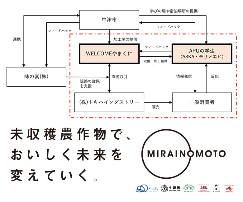 これらは「MIRAINOMOTO®」プロジェクトと名付けられ、収穫や加工を通じて農業や地域の実態に触れ、楽しみながらSDGsに貢献できる活動に取り組み、フードロスの削減や食を中心とした豊かな時間の創出に貢献することを目指しています。