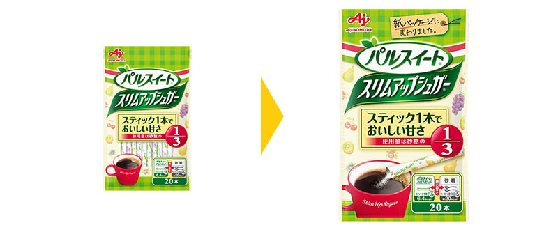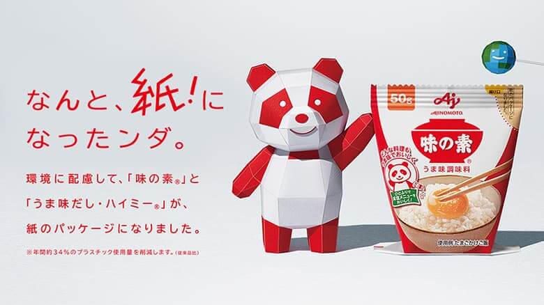 味の素社では、商品のパッケージをプラスチックから紙素材に変更したものや、環境に配慮した包材、緩衝材などへの切り替えを進めています。そういった取り組みを行った製品に独自の「味なエコ」マークを表示し、環境に配慮した商品であることをご確認いただけるようにしています。