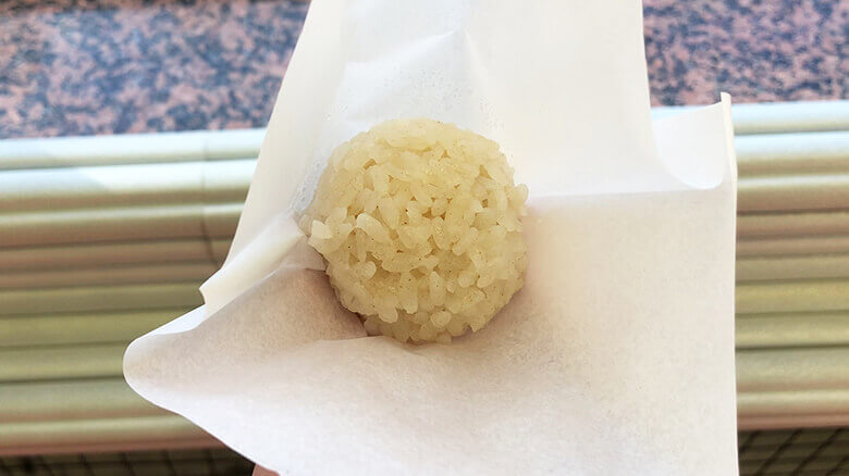 上野さんが補食におすすめするのが「パワーボール®」です。これは、「ほんだし®」を混ぜこんだ、一口サイズのおにぎり。短い時間でパクッと食べられるように、50グラムほどの量でつくるのがポイントです。こちらも「飲むおだし」同様に、参加者に試食が配られました。