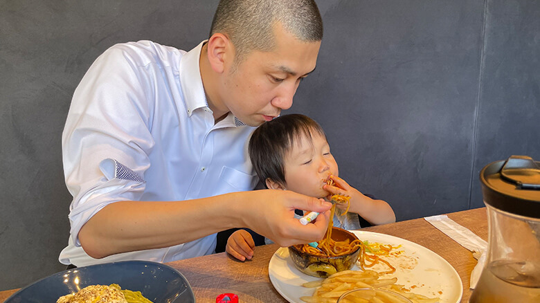 ご家族での外食風景。お子さんの「う〜ん、おいしい!」なお顔が可愛さいっぱいです。
