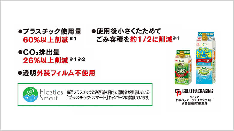 ・株式会社J-オイルミルズ 人と地球に優しい紙パック「スマートグリーンパック®」