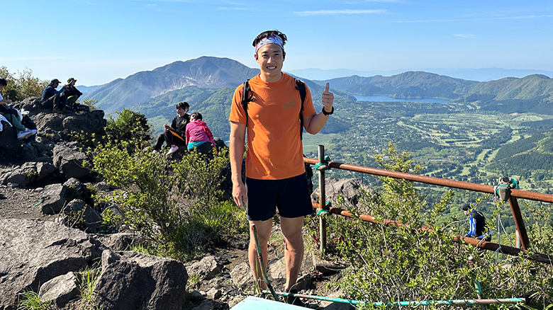 学生時代はアメフト部で活躍。趣味のトライアスロンのために出社前2時間のトレーニングを欠かさない。山では登山道を走る“トレラン(トレイルランニング)”で体を鍛えている。