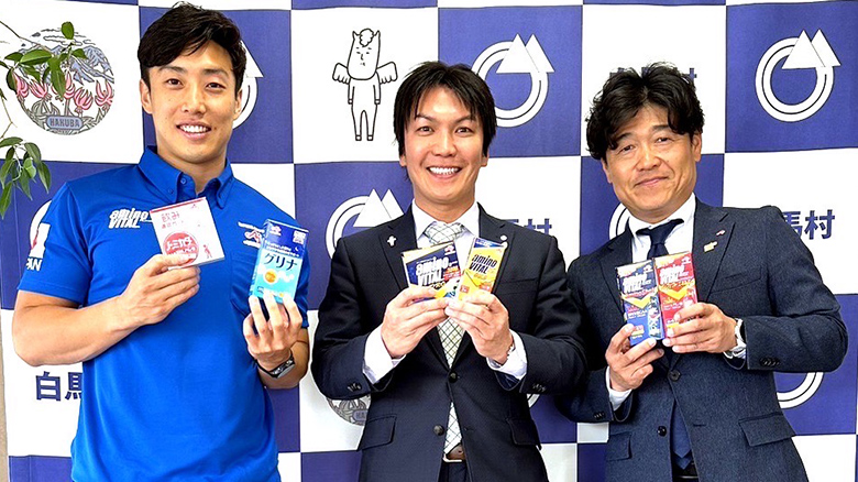 白馬村には以前からスキーでよく遊びに行っていたので、現村長の丸山さんとは村長になられる前から顔なじみだったんです。それが昨年、村長になられたというので、さっそく"行動食としての「アミノバイタル®」"について説明させていただきました(笑)。