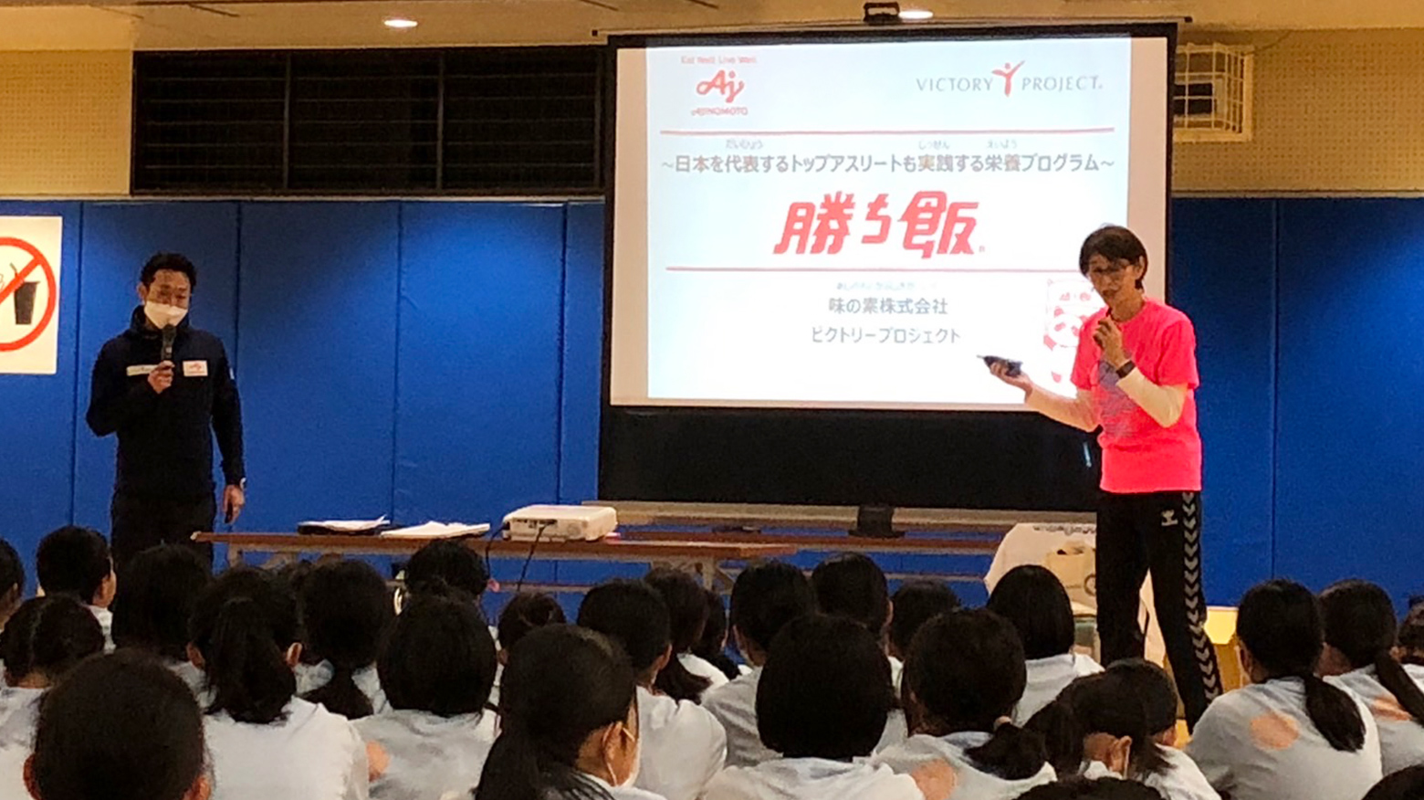 今回の大会で味の素社は、子どもたち向けにトップアスリートへのサポート活動知見から開発された栄養プログラム「勝ち飯®」の勉強会を開催しました。