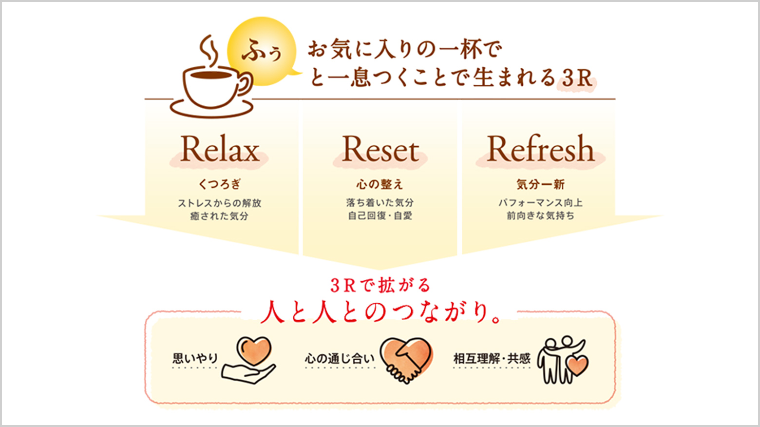 ここでいう「3R」とは、「Relax(くつろぎ)/Reset(心の整え)/Refresh(気分一新)」のことを指しています。