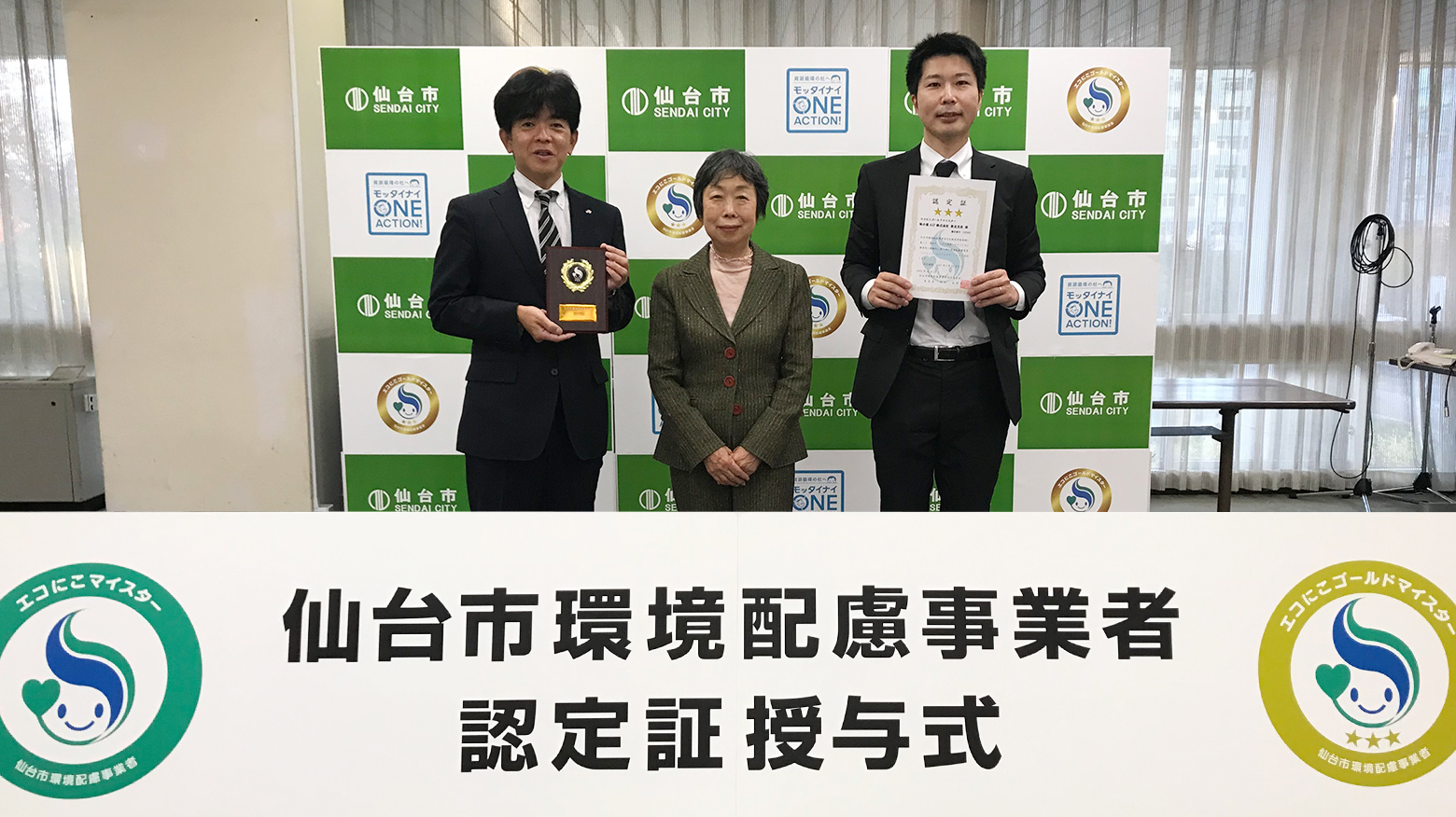 このような活動が評価され、味の素AGF株式会社 東北支社は、ごみ減量やリサイクル推進に取り組む仙台市内事業者の認定制度において最上位となる「エコにこゴールドマイスター」※の認定をいただいたそうです。