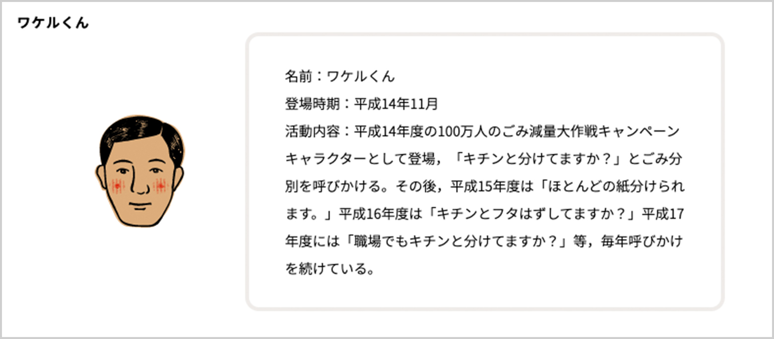 ワケルくんは、仙台市のごみ減量・リサイクル推進のキャラクターです。他にもワケ猫やワケミちゃんなど、個性的なキャラクターはサイトをチェックしてみてください。