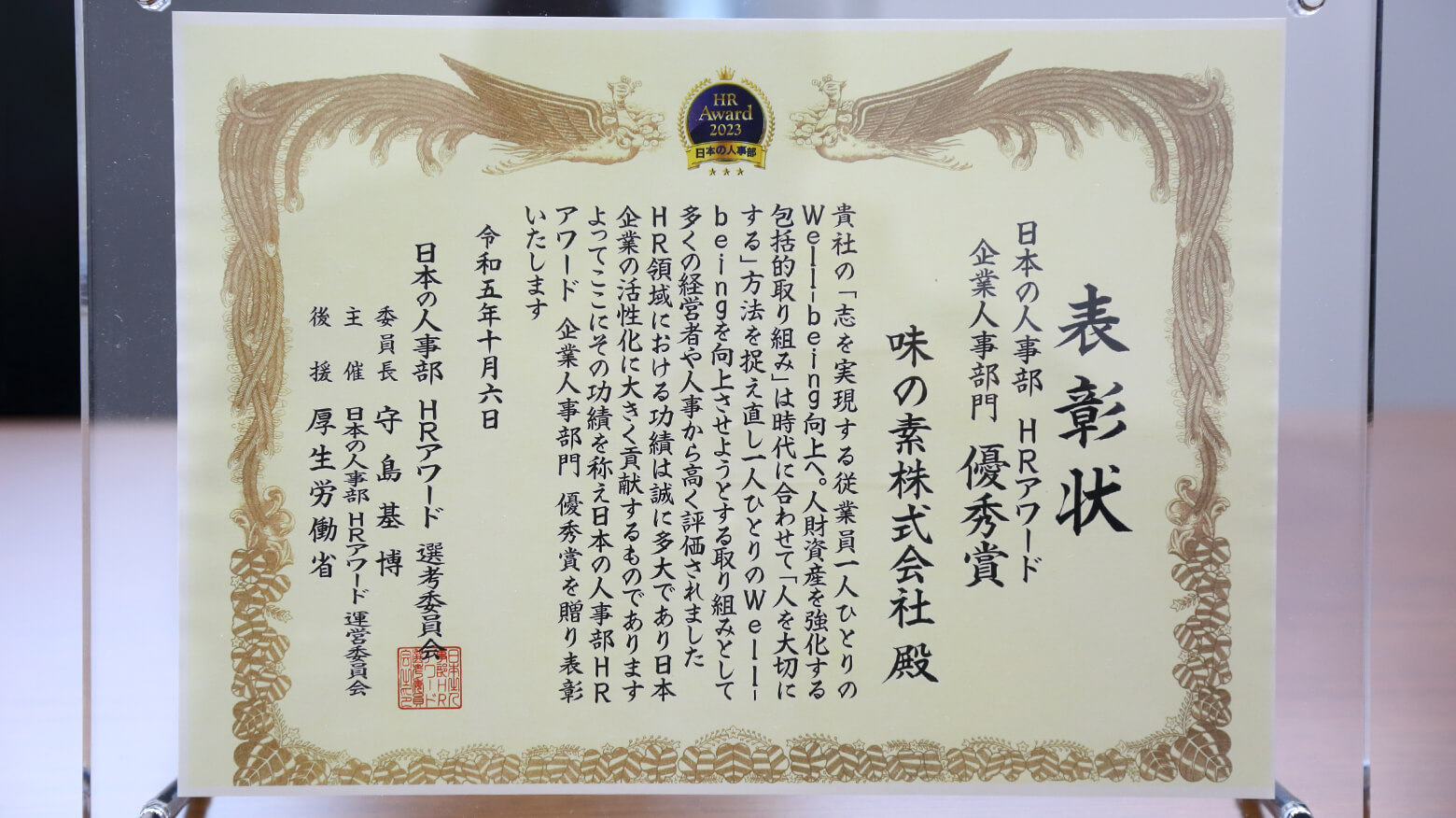 「HR(Human Resource =人事)」に関する表彰とはどういうものなのでしょうか。また、味の素社が「人事」という面で高く評価された理由も気になります。