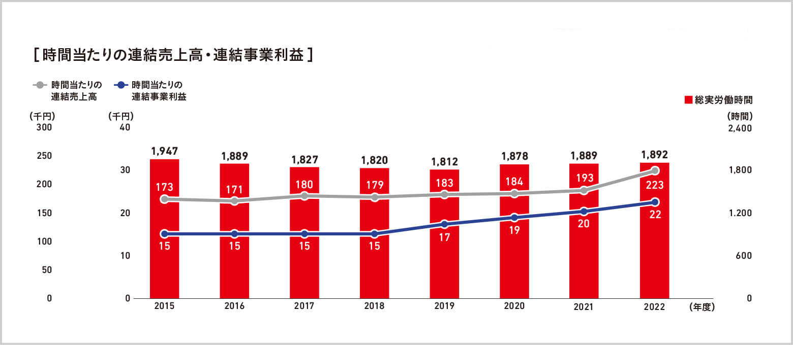 山本:ええ。ASV実現にも大きく貢献していますし、サーベイで測定している会社のパーパスに対する従業員の共感などは業績と相関があることもわかってきました。また、人財への投資のひとつの成果として「生産性(時間当たり売上や事業利益)」をモニタリングしています。これらの結果については、当社のASVレポート(統合報告書)でも開示しています。