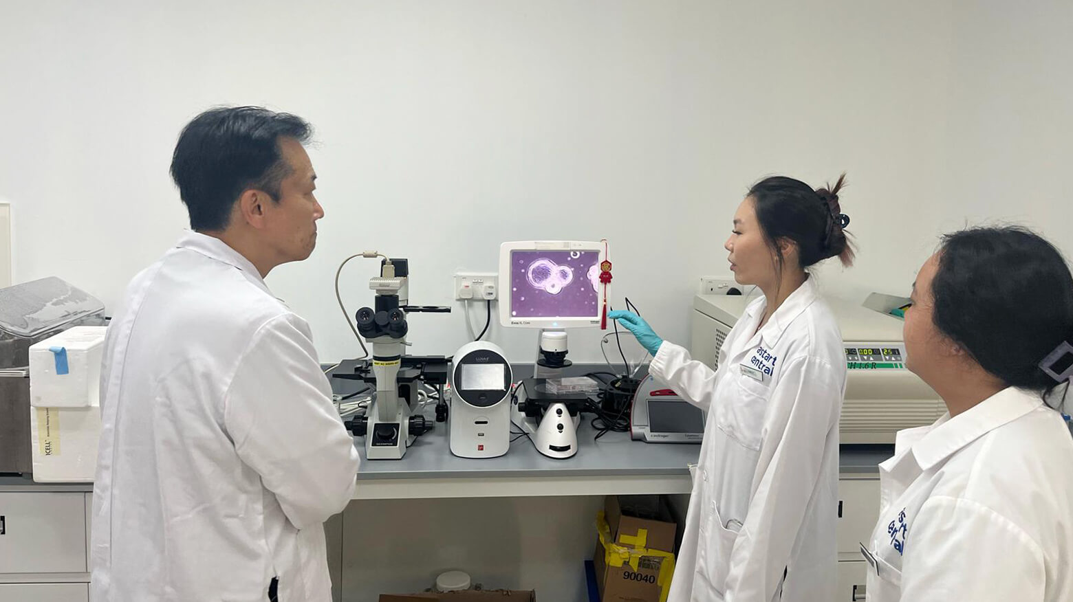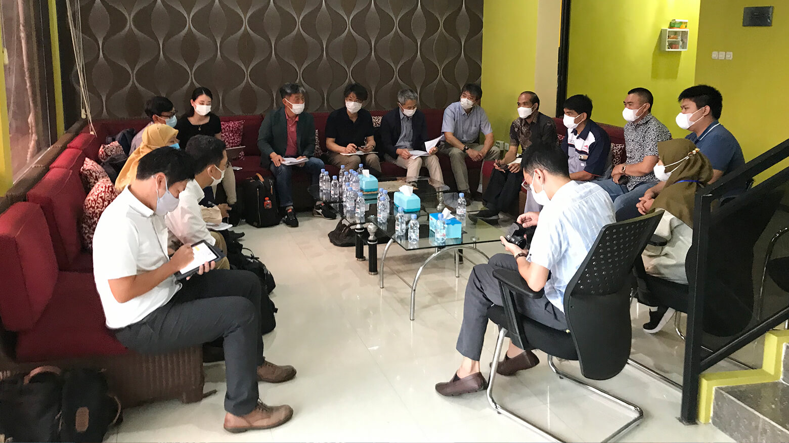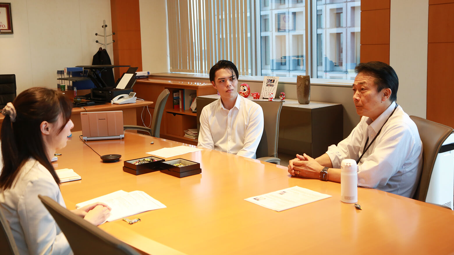 シンガポールのスタートアップ企業を訪問中の藤江社長(左)