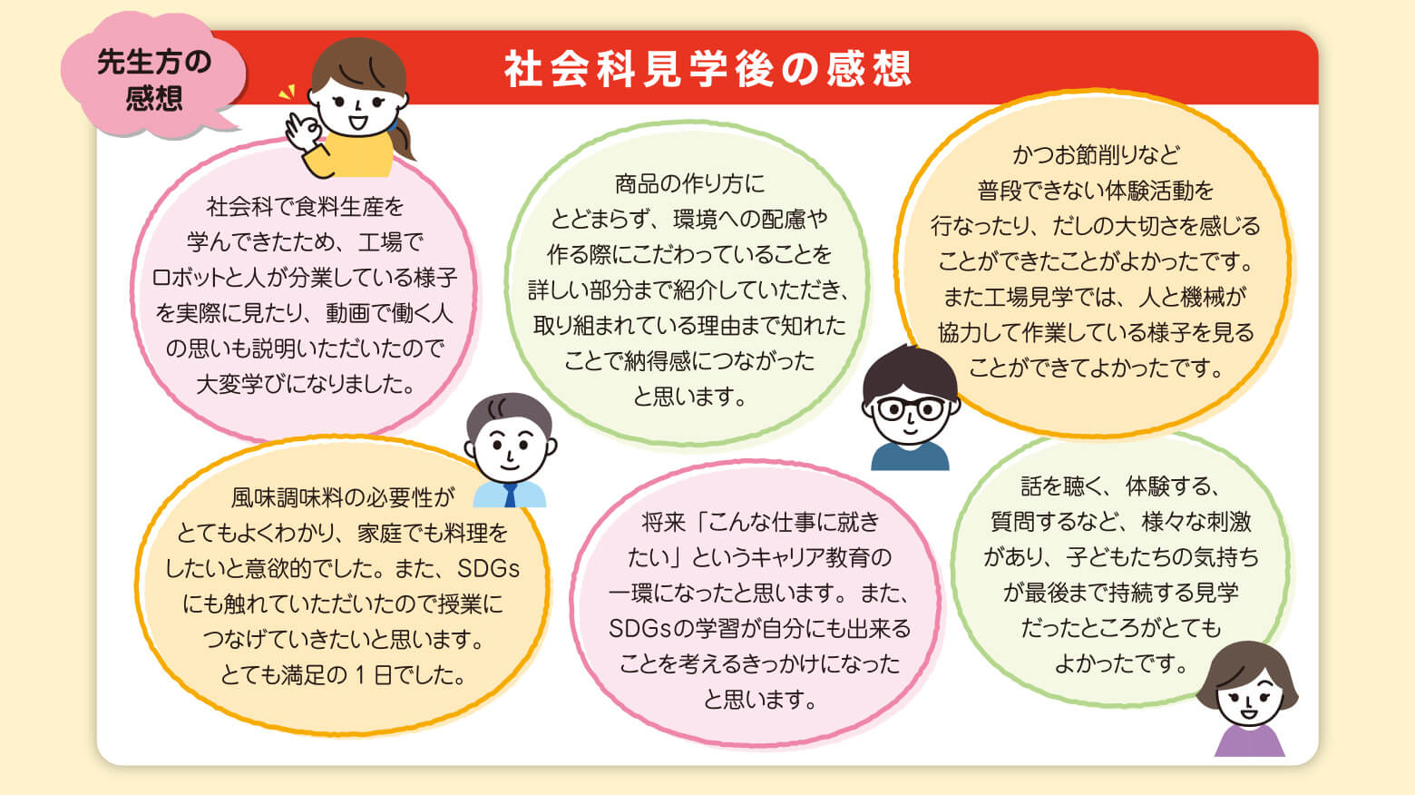 学校の先生方から寄せられた社会科見学の感想
