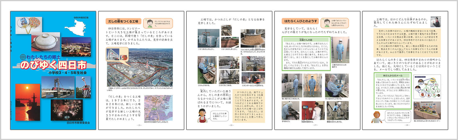 また、個人見学のほかに、学校の授業の一環として行う社会科見学(小学校3年〜5年)も受け入れています。地域の子どもたちの「学びのコンテンツ」として、工場見学が活用されており、四日市市の小学校の社会科の副読本にも取り上げられました。
