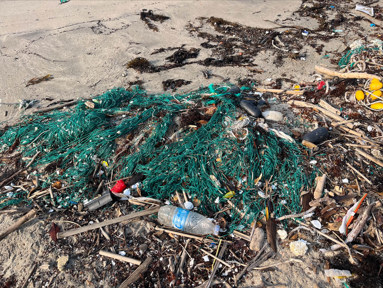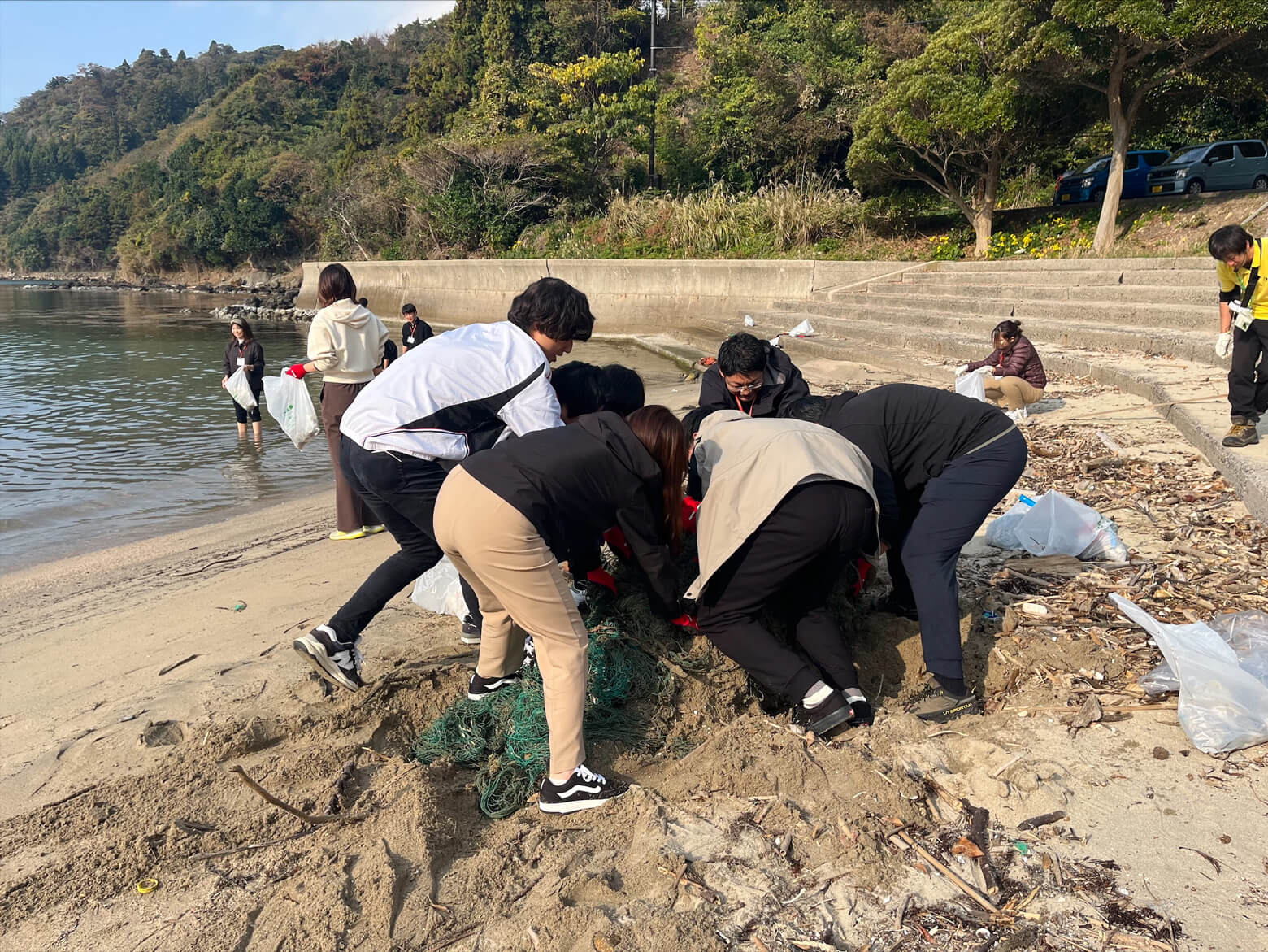 そして、ビーチのゴミ拾いへ。プラスチックや発泡スチロールの破片、漁網など、大小さまざまなゴミが大量に落ちていました。これらを手やトングでひとつずつ拾っていきます。