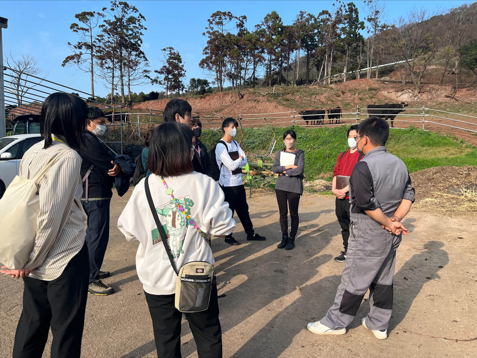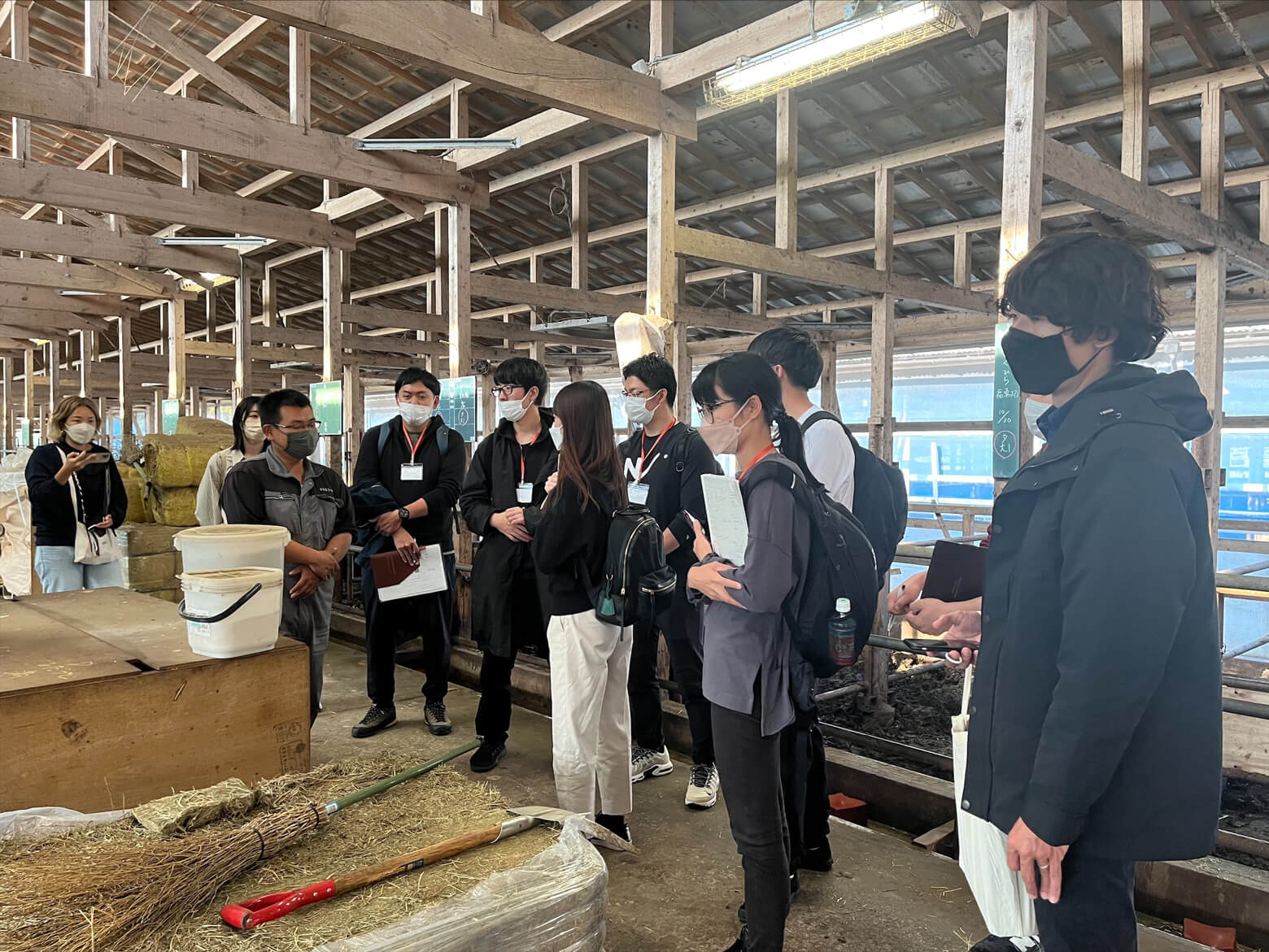 その後、海士町で食の現場の最前線にいる方々の想いにふれるべく、3つのグループに分かれて事業者を訪問しました。隠岐牛を育てる「潮風ファーム」では、場長の安田さんの案内で牛舎を見学。牛の育て方や牛肉のブランディング施策など、いろいろなお話を伺いました。