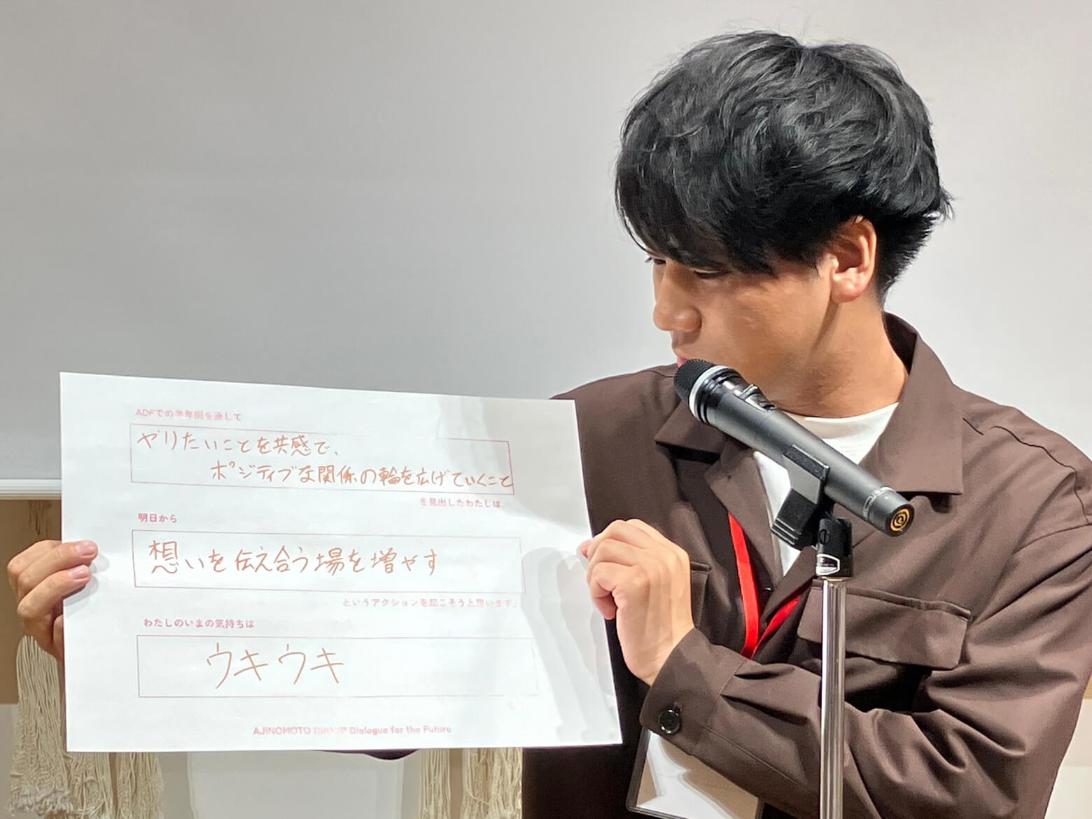 3つ目は、プライベートも含めて、これまで以上に多くの方とのつながりをつくること。私はもともと人とコミュニケーションをとるのは好きなのですが、ADFを通じて改めて、さまざまな価値観の人との出会いが自身の成長につながると実感しました。社内でのつながりを広げるだけでなく、社外にも目を向けて、人とのつながりの輪をつくっていけたらいいなと考えています。