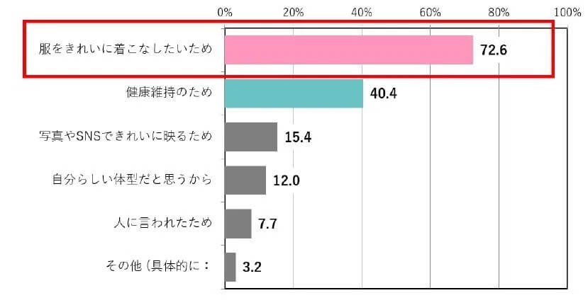 なりたい体型を目指す理由の1位は「服をきれいに着こなしたいため」