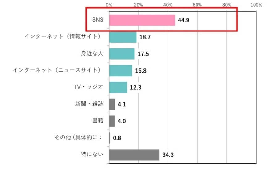 そして、なりたい体型や体重を目指すための情報は、SNSから得ているというのがダントツの1位。そのほか、インターネットの情報サイトやニュースサイトを利用しているという回答も上位に...。