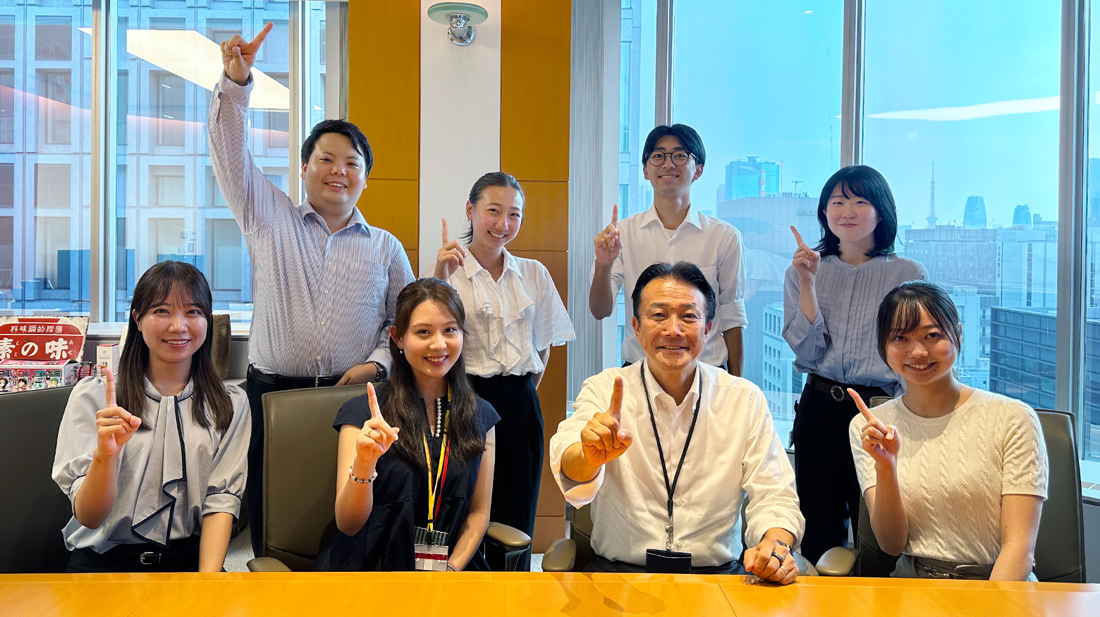後列左から:清川慎介(バイオ・ファイン研究所)、鈴木千心アヌエヌエ(川崎事業所)、金子黎音(バイオ・ファイン研究所)、小林真理香(バイオ・ファイン研究所)前列左から:岡莉央那(バイオ・ファイン研究所)、菅家有彩(味の素ヘルシーサプライ株式会社アミノ酸営業本部)、井出恵梨花(東京支社)