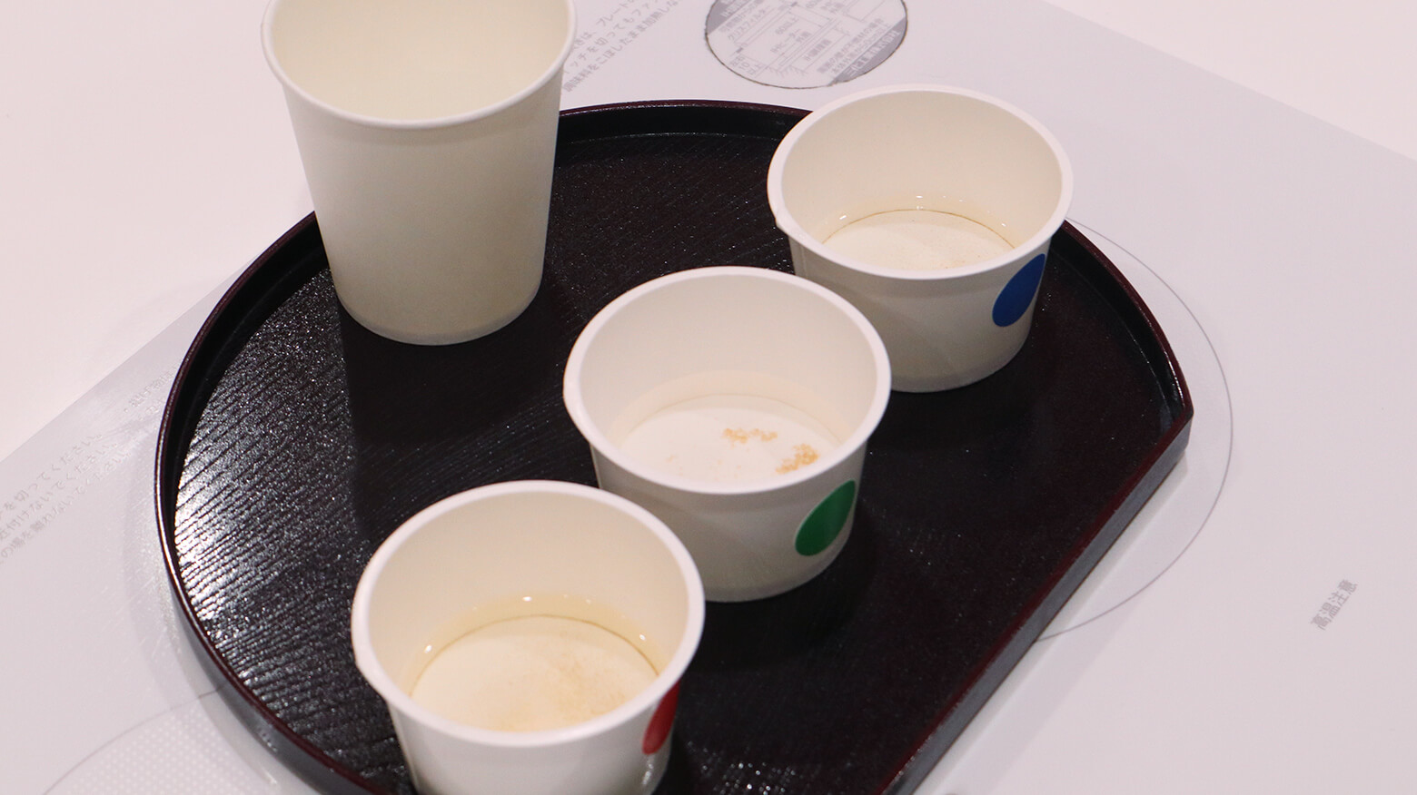 「だしBAR」は、かつお節職人が燻し分けた3種のかつお節を使っている「ほんだし®」、北海道昆布を使用している「ほんだし® こんぶだし」、国産いわしを使用している「ほんだし® いりこだし」の3種の「だし」がお湯でといたカップに用意され、利き酒ならぬ「利きだし」をするイベントです。
