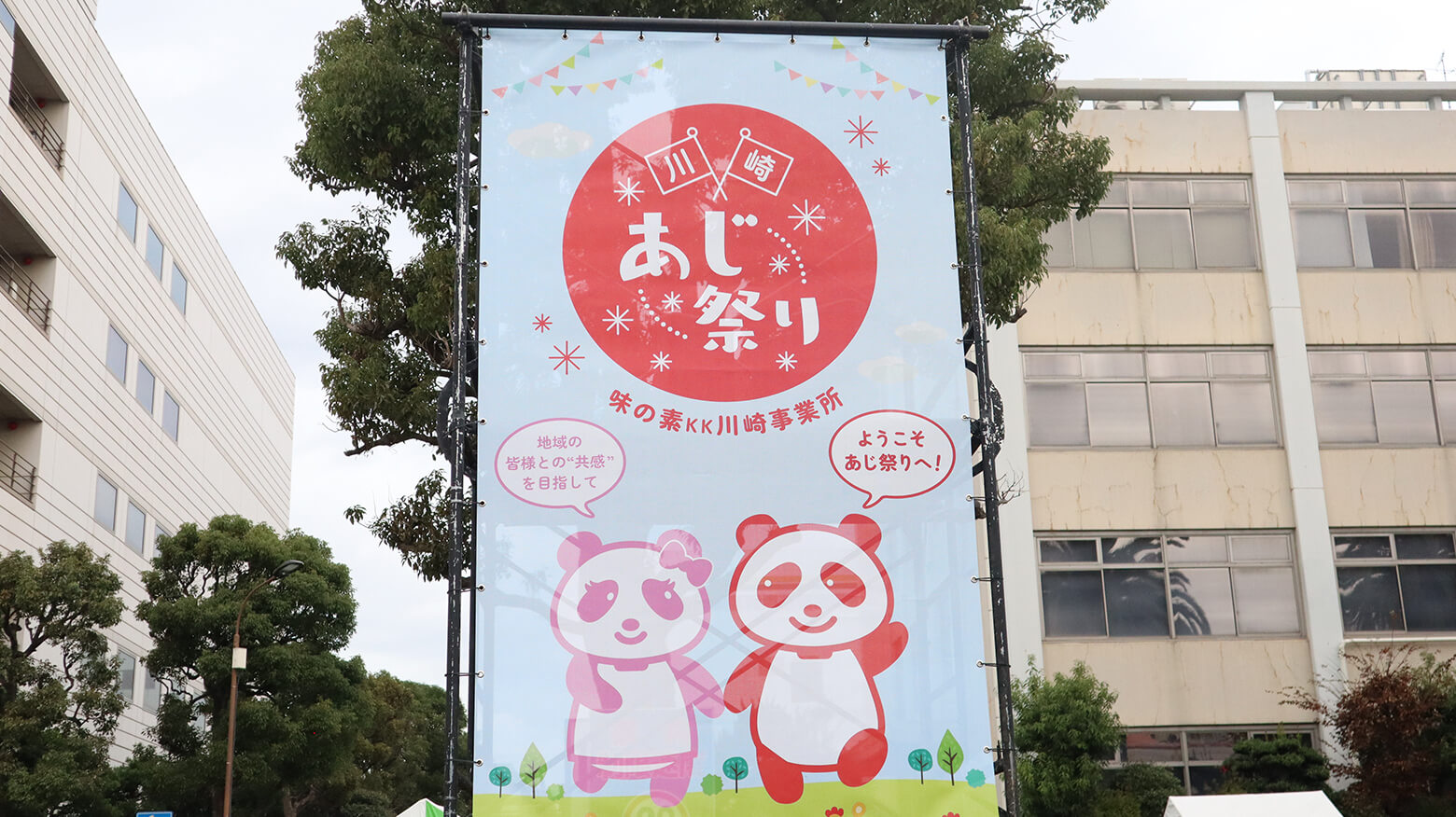 その川崎事業所では、年に一度「あじ祭り」というイベントを開催しています。近隣にお住まいの方を中心に一般の方々を敷地内にお招きして楽しんでいただくイベントです。