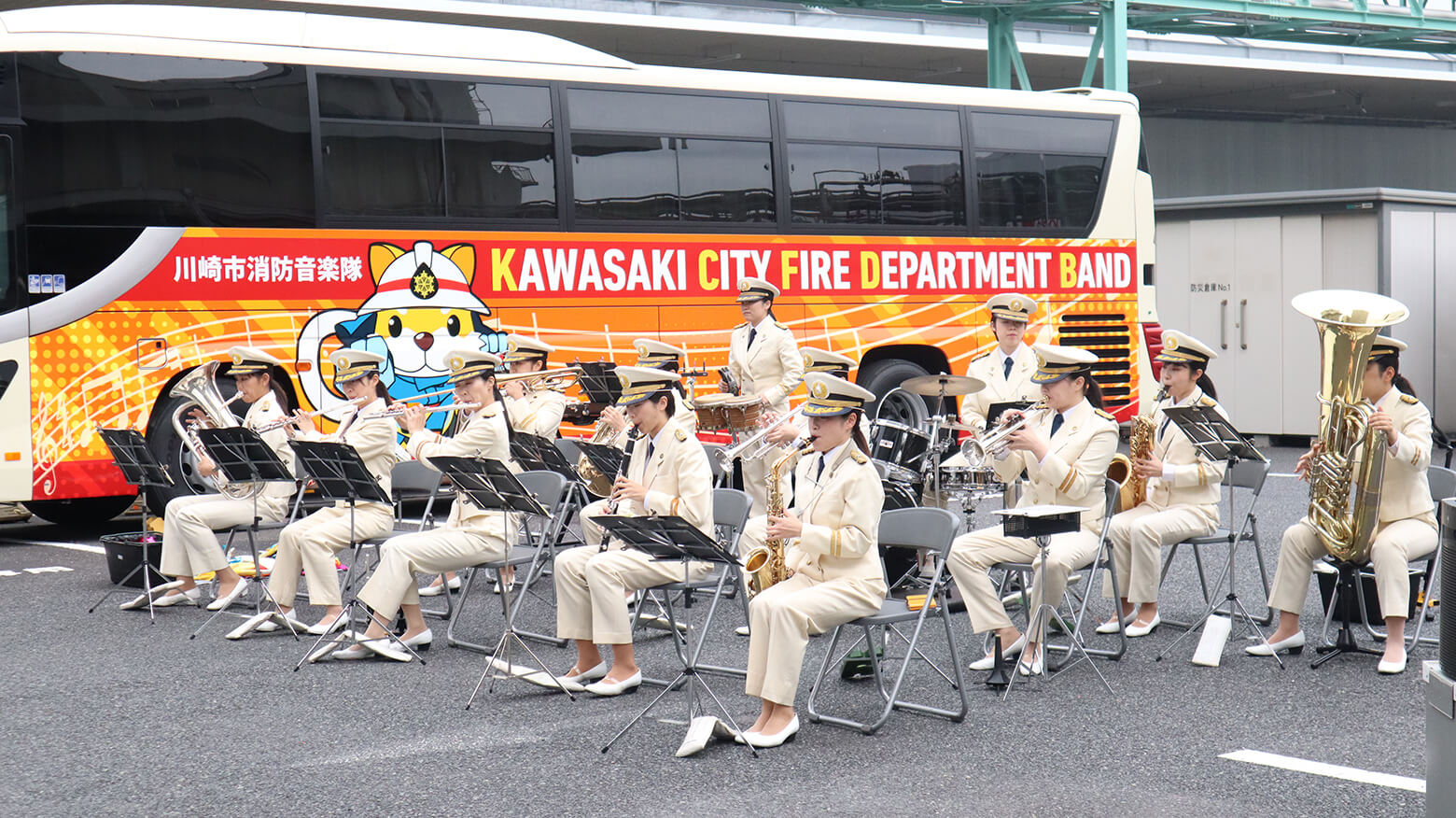 消防局カラーガード隊(音楽隊)も参加!軽快なリズムとサウンドによる素敵な演奏を披露していました