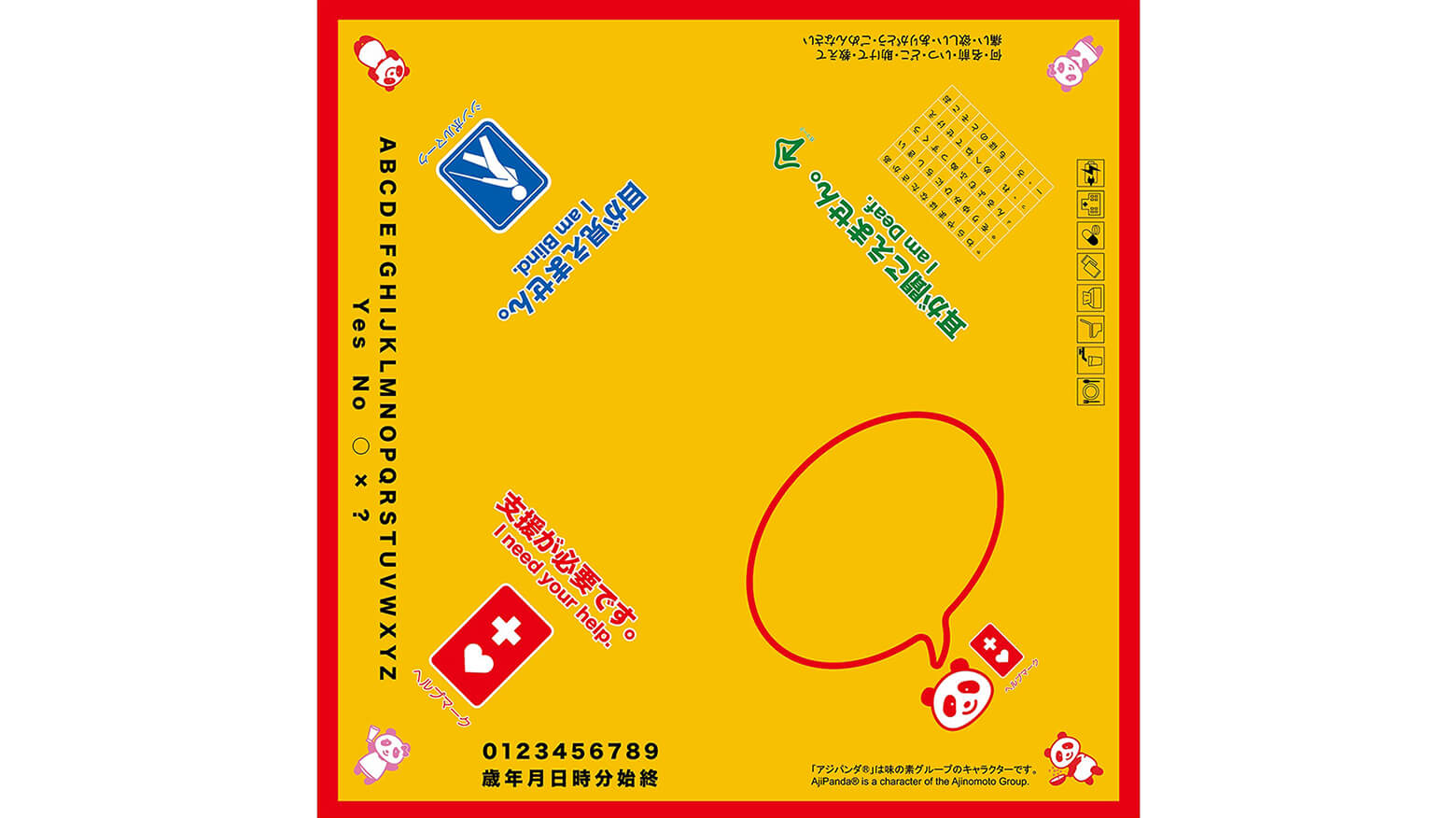 災害支援バンダナとは災害時の避難所などに配備されており、障害や不便さのある人が身に着けることで、配慮が必要であることを周囲に意思表示したり、支援や情報が得られないことを防ぐ目的でつくられているバンダナです。