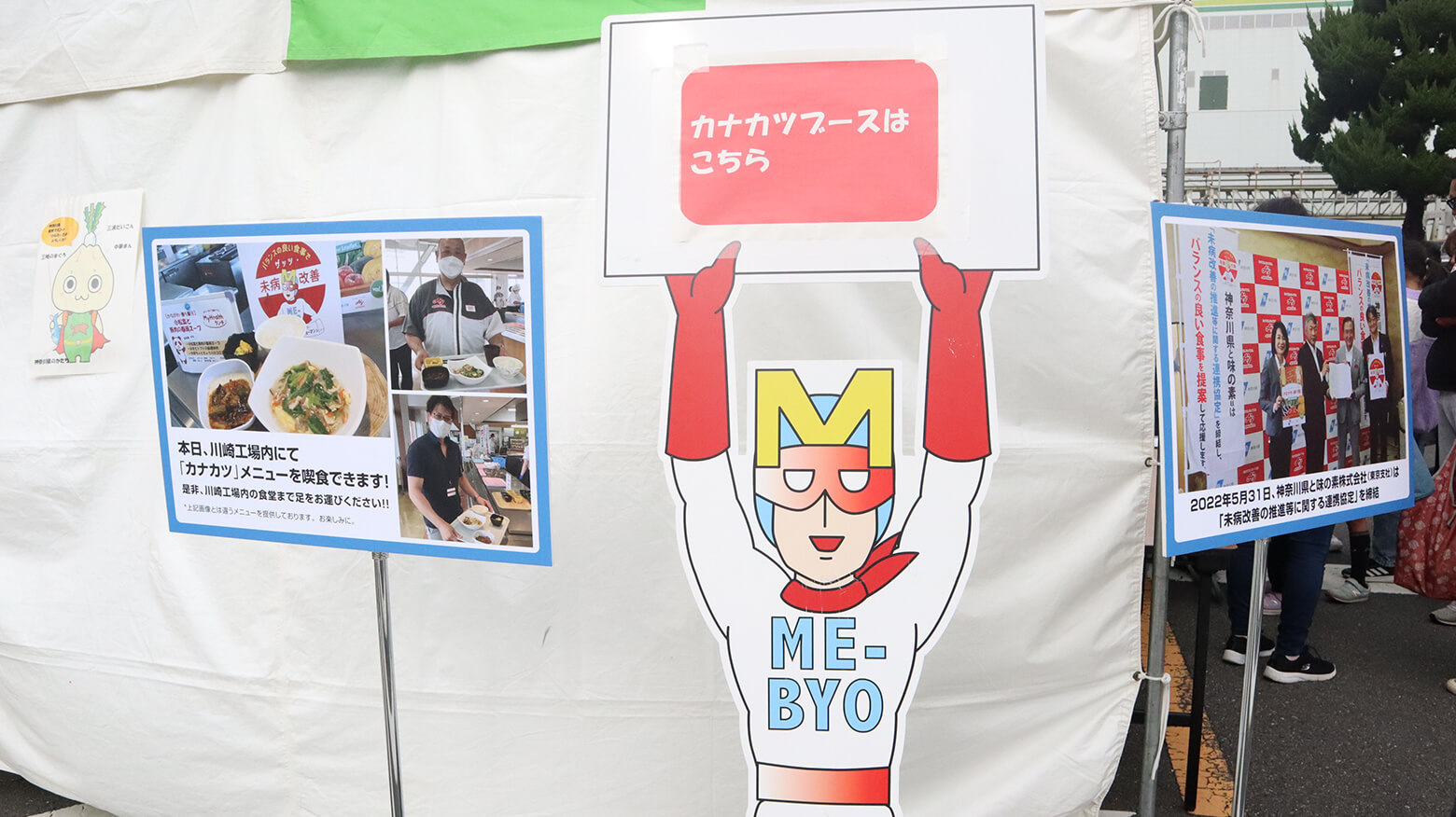 神奈川県と味の素社東京支社の協働で行っている「未病改善」。「ミビョーマン」というキャラクターもこの活動を盛り上げます。