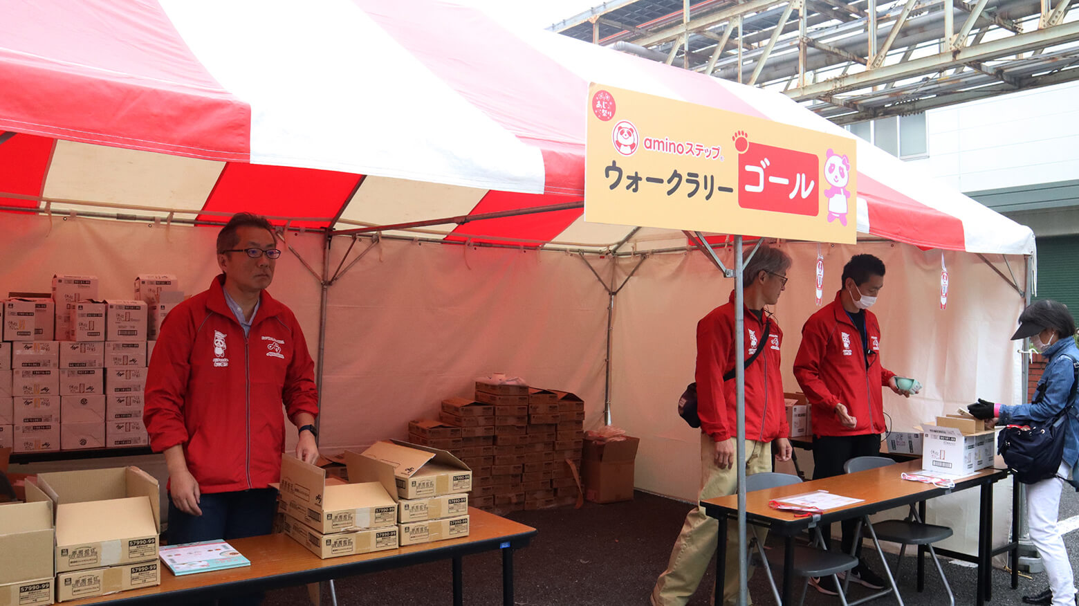 スマホアプリ「aminoステップ®」を活用し6箇所のチェックポイントをめぐるウォークラリーも開催。景品は「粥粥好日」(かゆかゆこうじつ)。参加しただけで健康も意識できるのも「あじ祭り」の楽しさです。