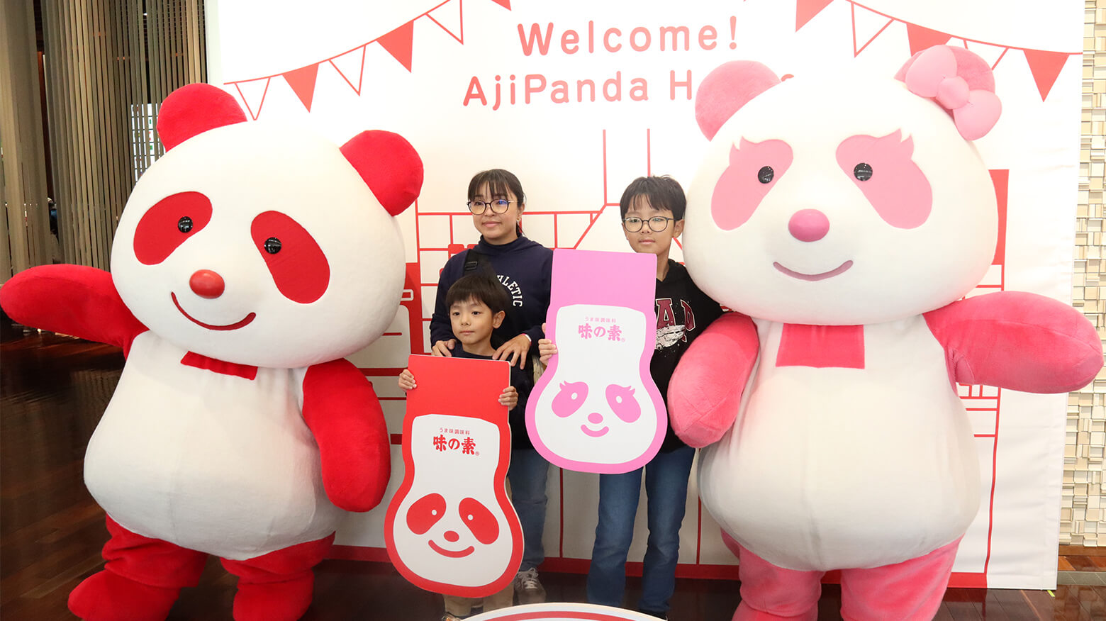 アジパンダ®、アジパンナ®と一緒に記念撮影