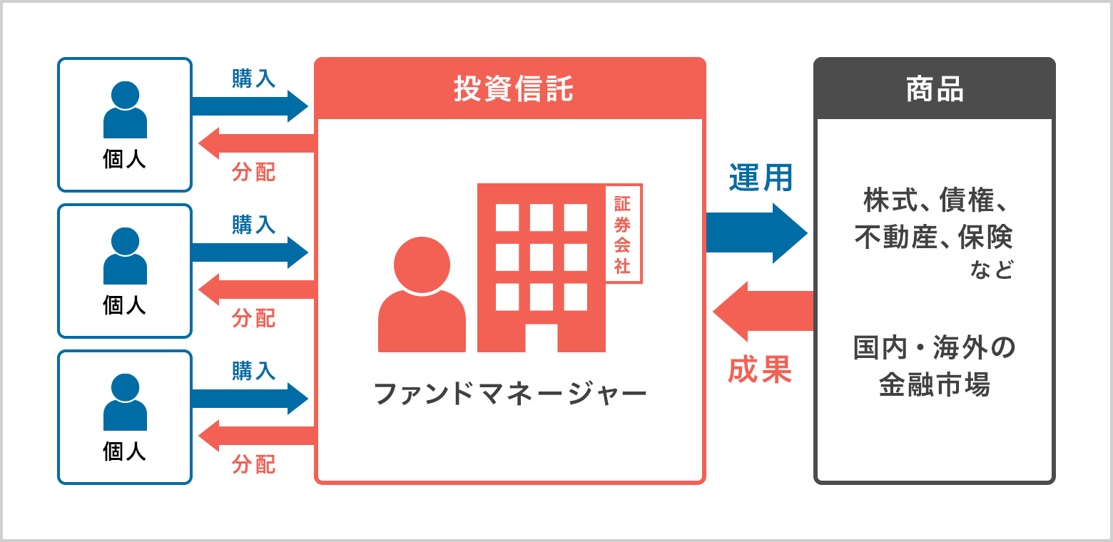 投資信託とは、投資家から集めた資金を専門家が運用し、その利益を投資額に応じて分配する商品を指します。