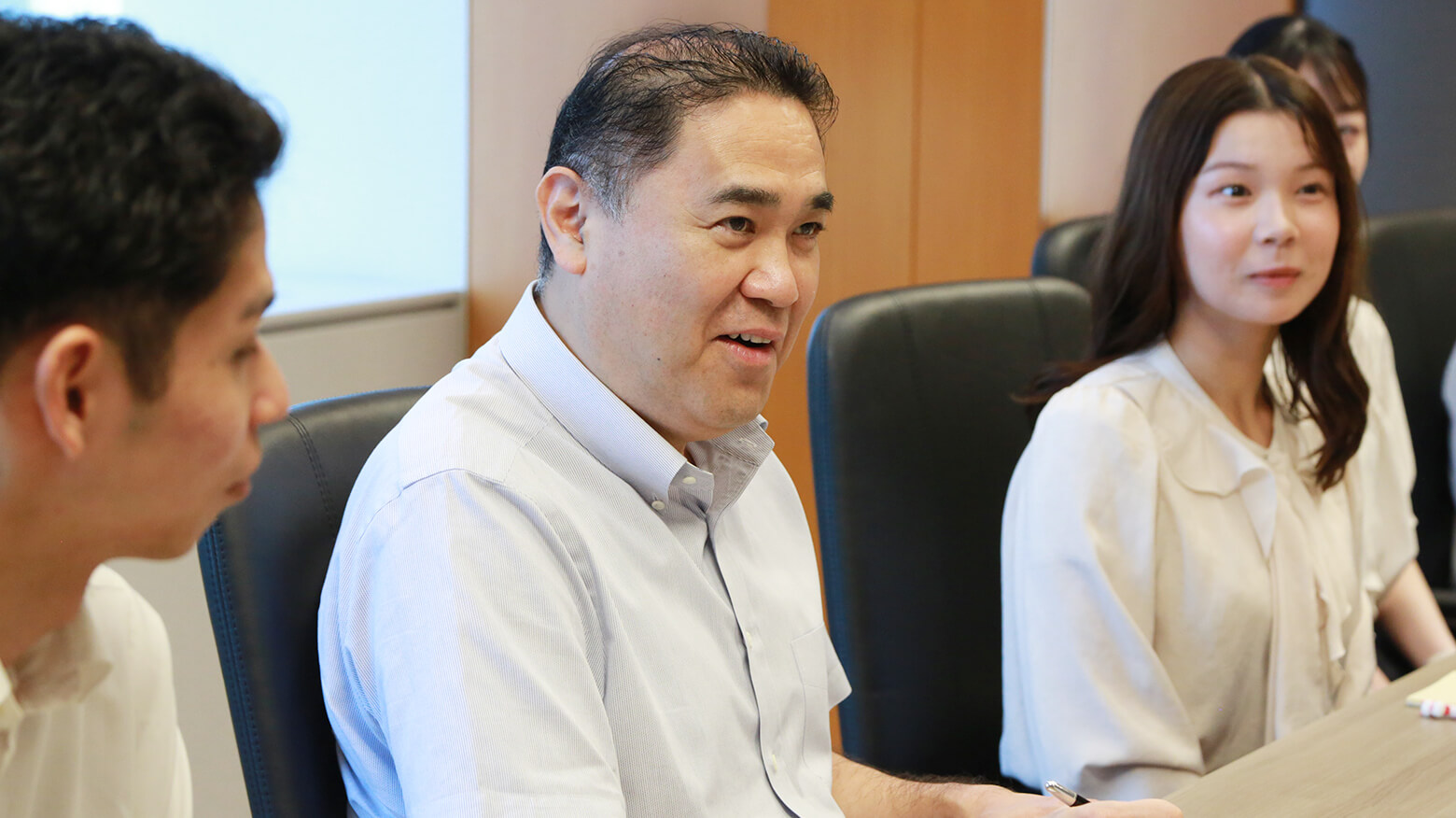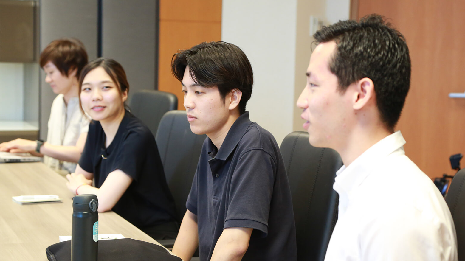 今回社長室のドアをたたいた新入社員たちと中村さん