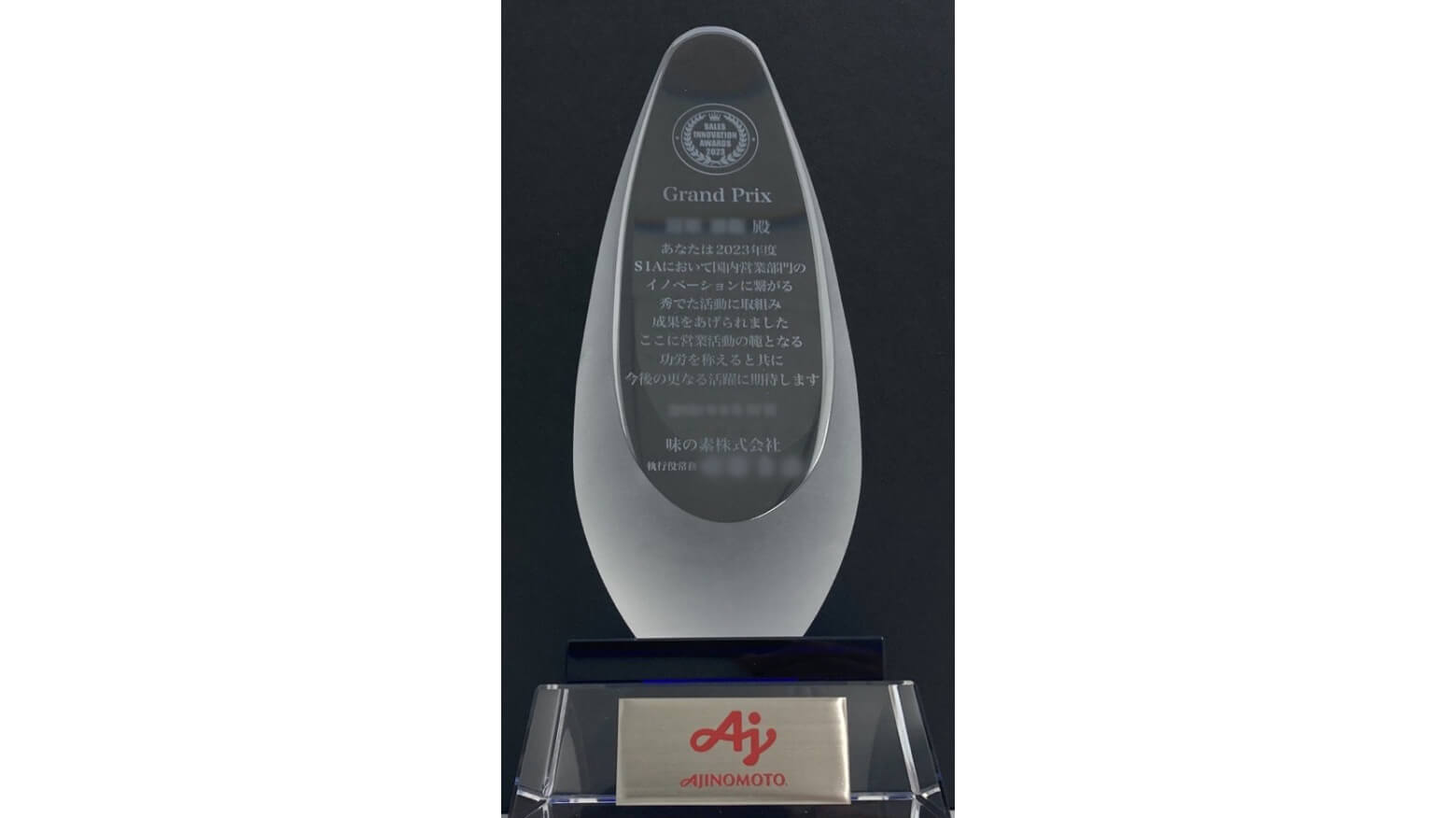 入社2年目の営業担当者の受賞です。顧客企業に味の素社のMSG(グルタミン酸ナトリウム)採用で環境負荷低減が実現できることを訴求。サステナビリティ推進という新たな観点で、購買部(必要な生産に必要な原料・資材を購入する部署)を皮切りに、顧客企業の数多くの部署へのチャレンジングなアプローチが高く評価されました。